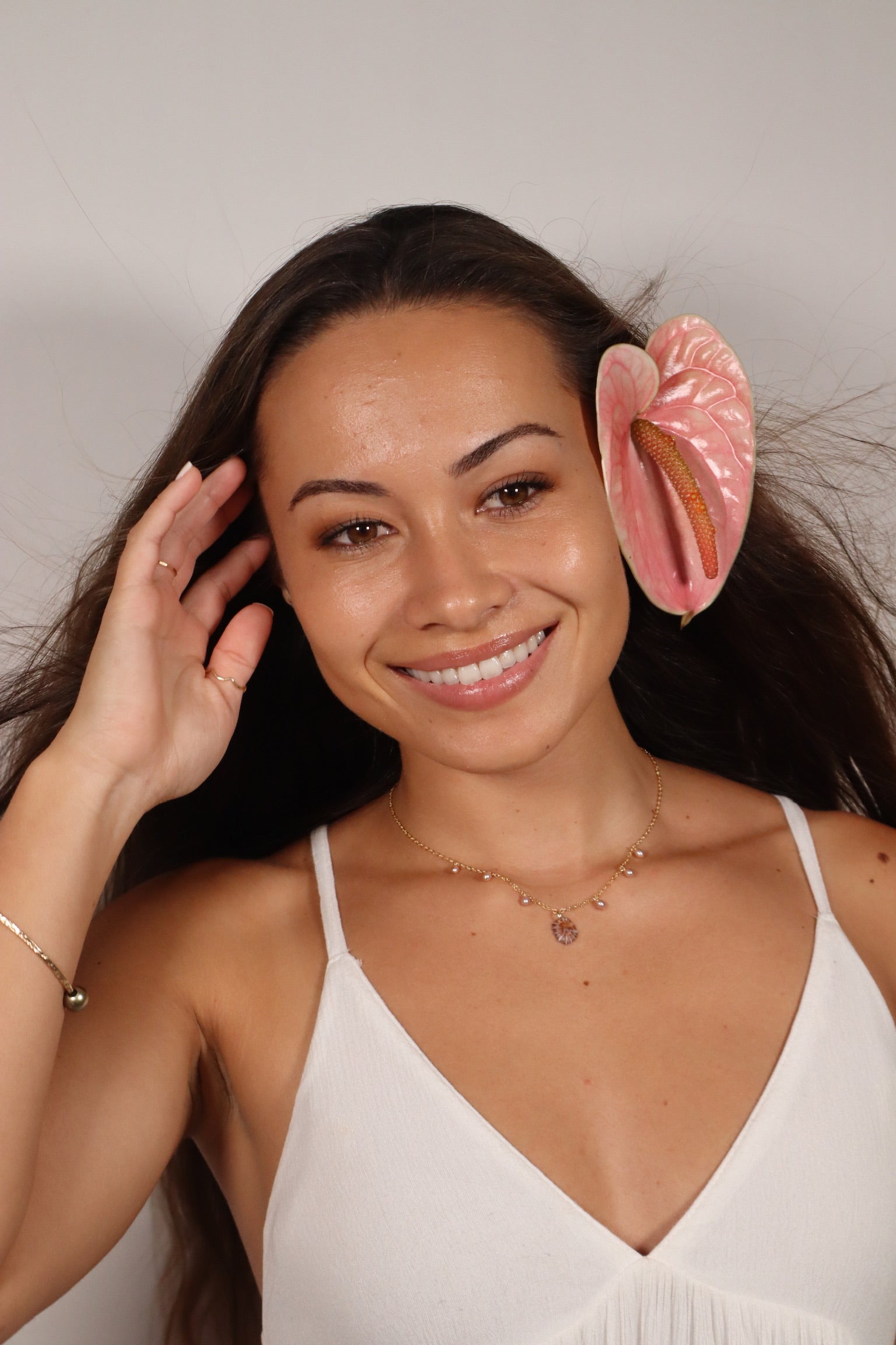 The Ocean Radiance necklace pairs the natural beauty of a patterned shell with dainty freshwater pearls on a 14K gold-filled chain. Lightweight and elegant, this piece brings a touch of island charm to both everyday looks and special occasions