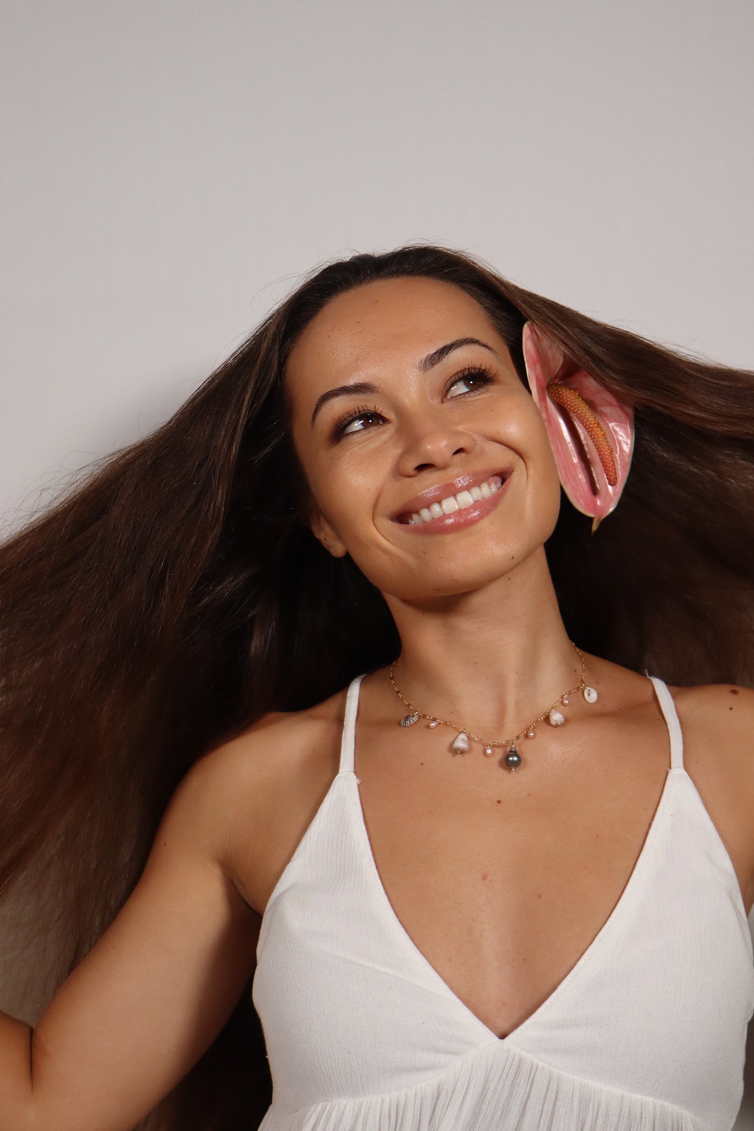 - Material: Gold-filled chain, Puka shell, Cone shell, ‘Opihi, Freshwater Keshi Edison pearls, Tahitian pearl